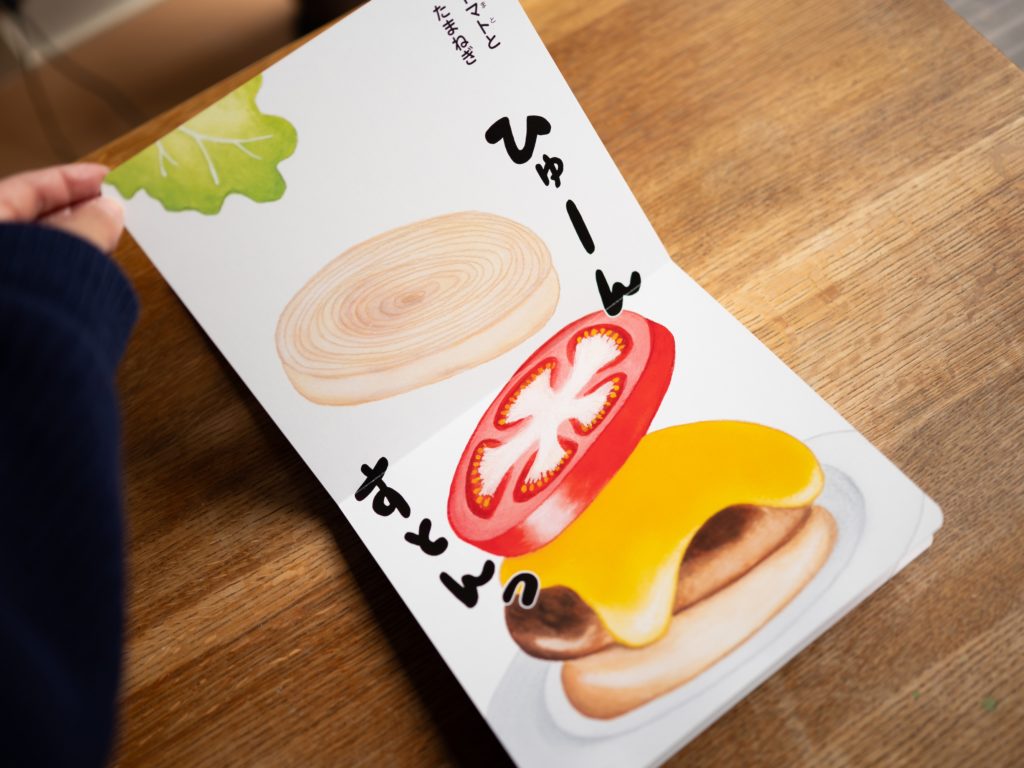 絵本いっぱいのハンバーガー、おうちの方や、先生と一緒に